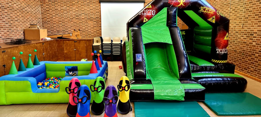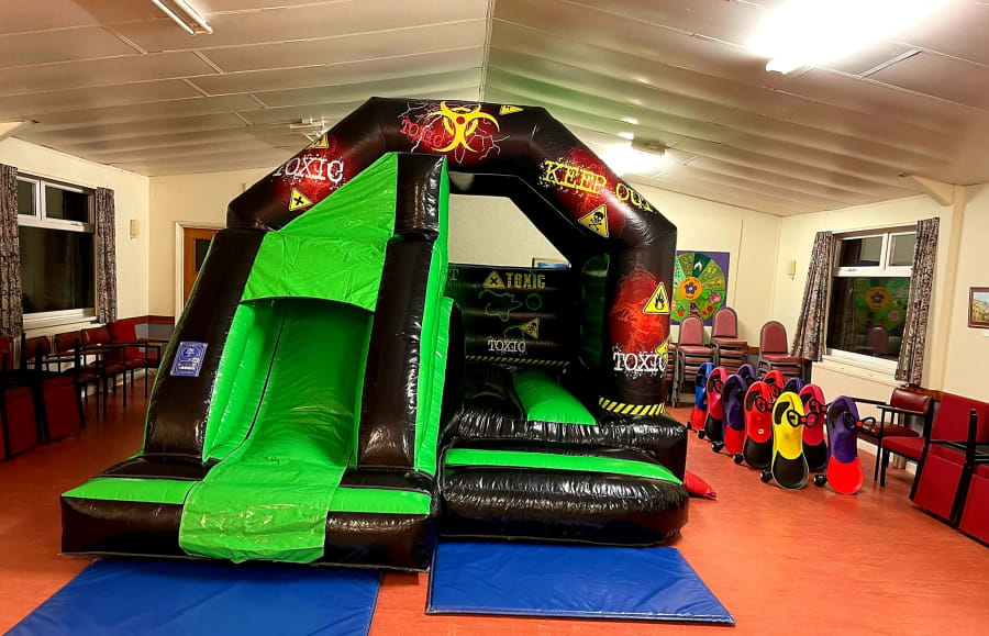 All our castles need to be located inside a hall or on a grassed area free of any debris or animal foul.