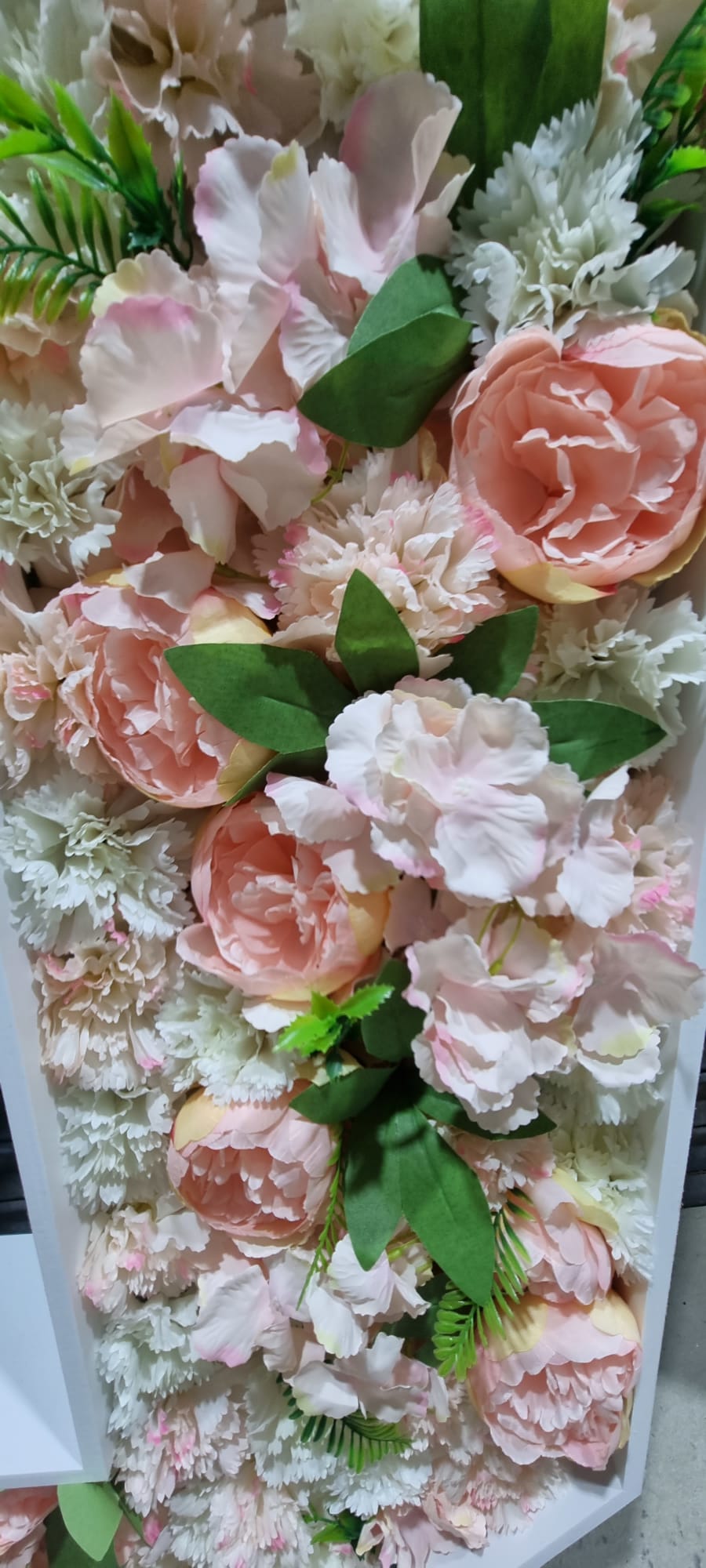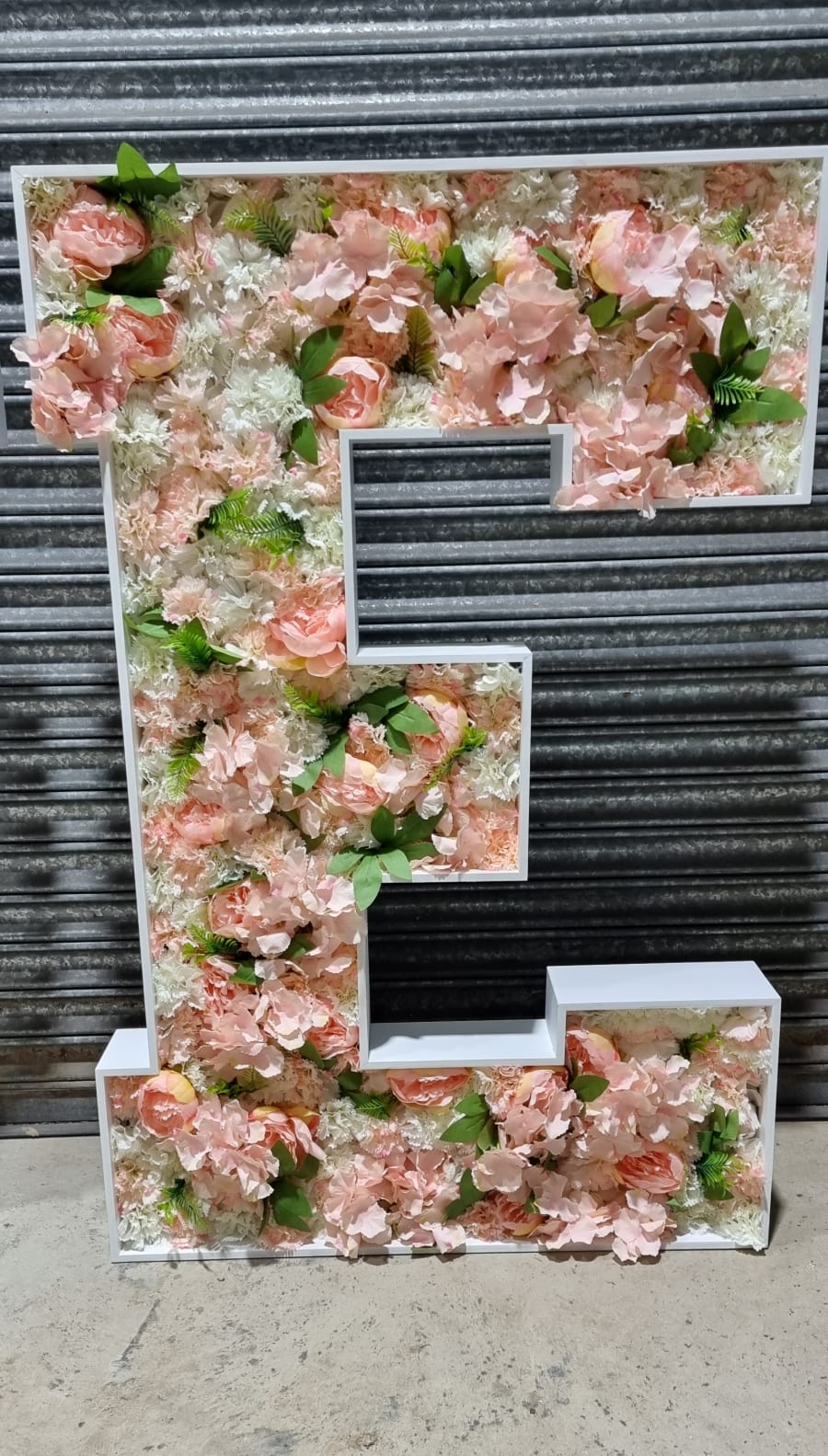 Hand made with nothing but love, these letters are filled with beautiful peach, pink and ivory hydrangeas, peonies and carnations.