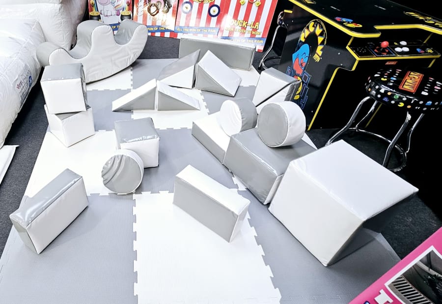 โwhite and grey softplay shapesโ