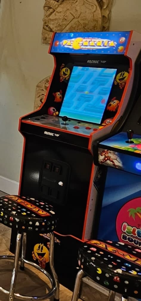 Complete with 14 different style pac-man games, this arcade machine will keep yourself or your guests occupied for hours! Games included- โ PAC-MANIA โ PAC-MAN โ PAC & PAL โ SUPER PAC-MAN โ PAC-MANTM PLUS โ PAC-LAND โ GALAGA โ GALAXIAN โ GALAGATM '88 โ MAPPY โ DIG DUG โ DIG DUG II โ ROMPERSTM โ ROLLING THUNDER