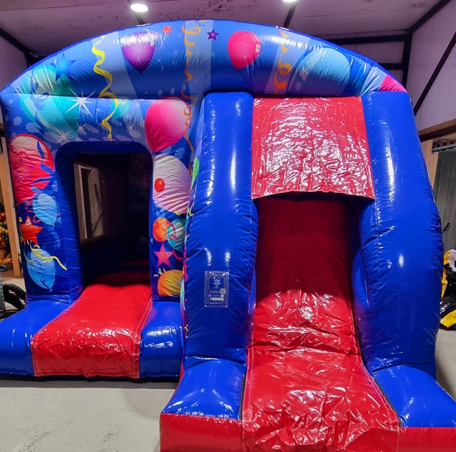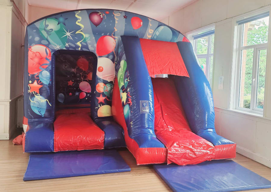 You can't go wrong with this red and blue party themed bounce and slide, the PERFECT addition for joint birthday parties or any party! Vibrant colours with scattered balloons gives the happiest party vibe! This is always a winner!