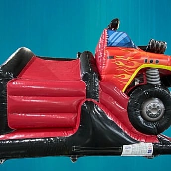 This 3d monster truck bounce and slide is any car lovers dream bouncy castle, not only does it have eye catching art work but your little ones can slide straight through a monster truck! Bright colours, tyres, lights and suspension, what more could a petrol head ask for!!