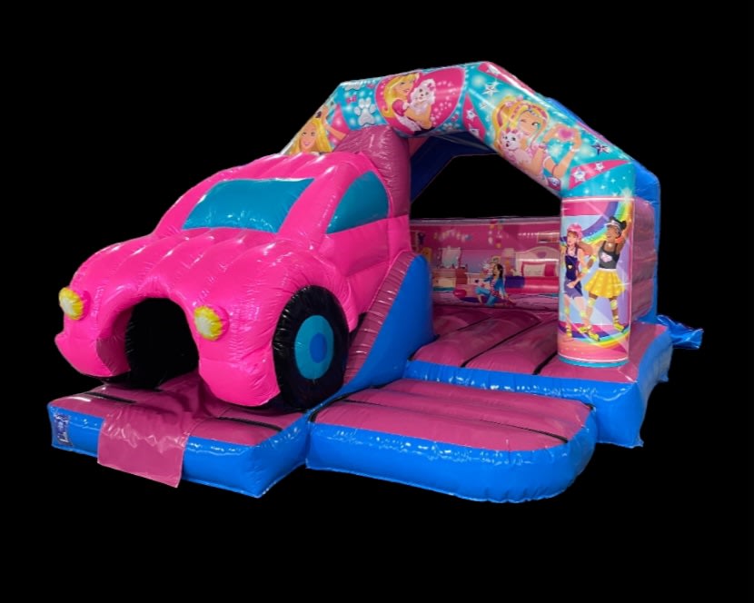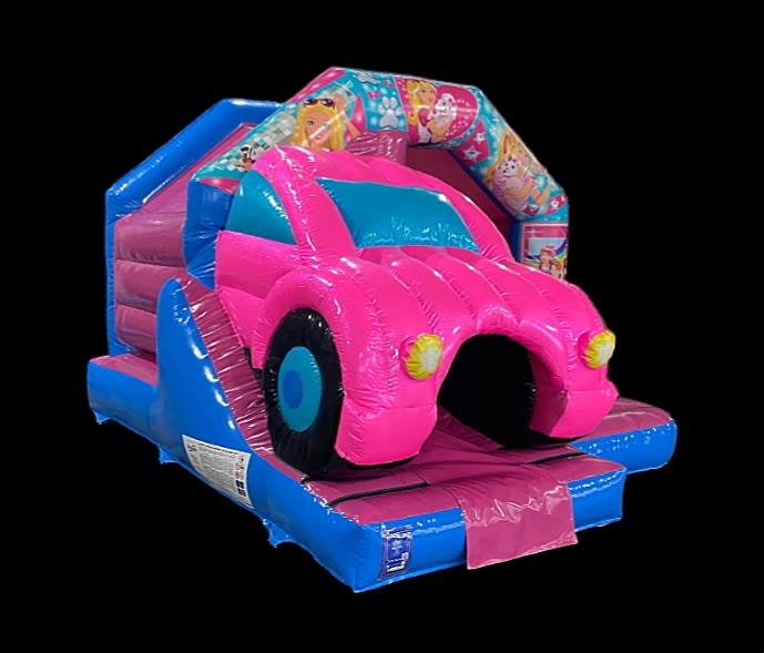 ๐ฉท With its bright pink, glittery 3d car, large bouncing area and built in slide, its the perfect addition to any barbie themed party! ๐ฉท