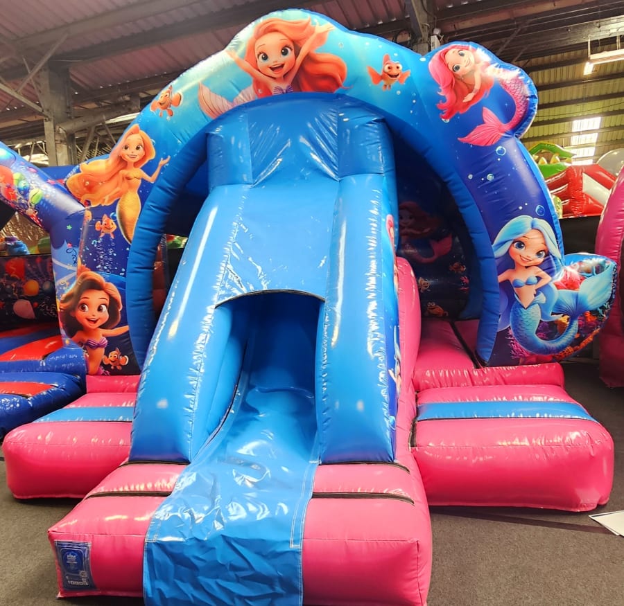Transform your party into an underwater adventure with our Mermaid Bounce and Slide. Whether it's a birthday bash, a community event, or just a fun-filled day in the garden, this vibrant mermaid bouncy castle will captivate the hearts of young adventurers. Designed with a stunning mermaid theme, it promises an unforgettable experience for all!