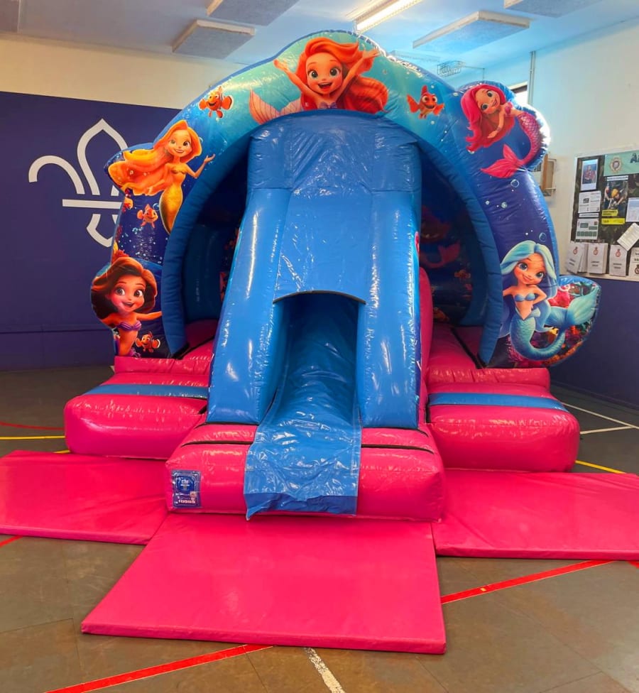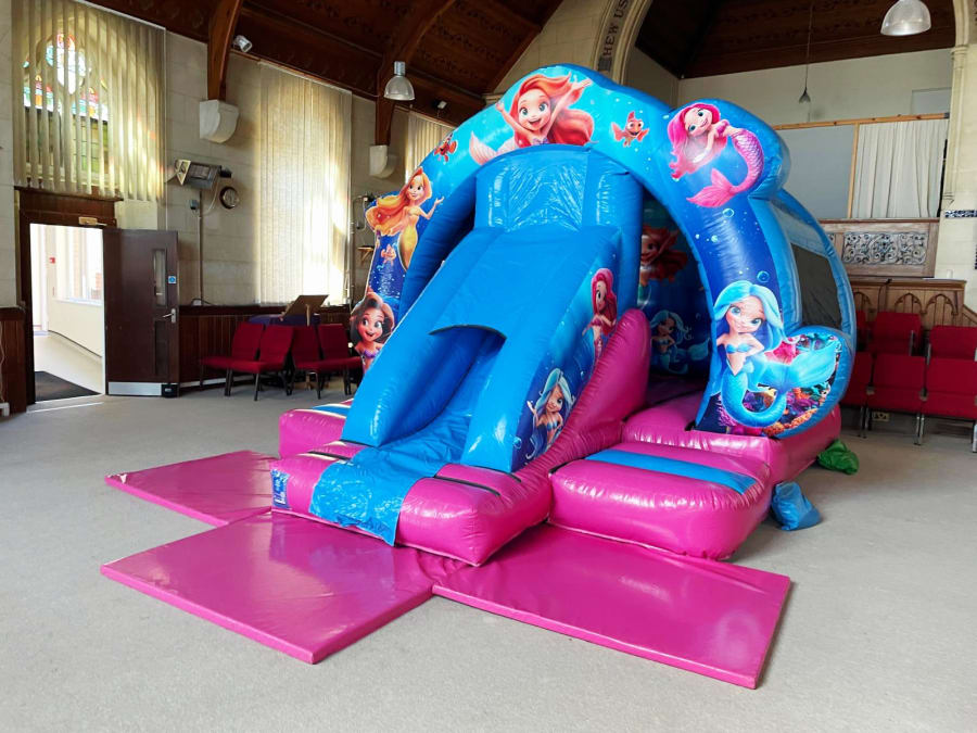 This mermaid-themed bouncy castle with slide is ideal for parties, birthdays, and various gatherings. Its enchanting design will bring hours of fun, with free delivery and set across the Isle of Wight, jump into this bouncy world of mermaid magic!