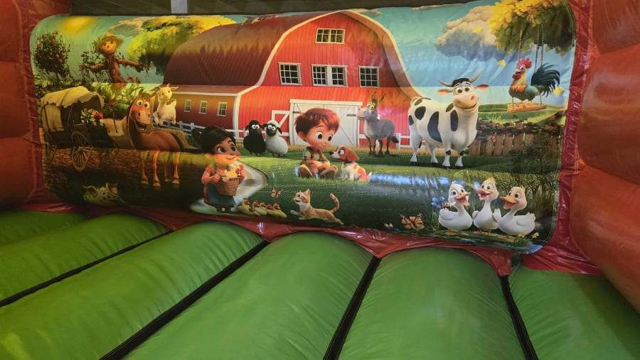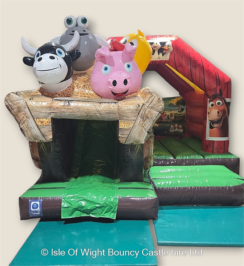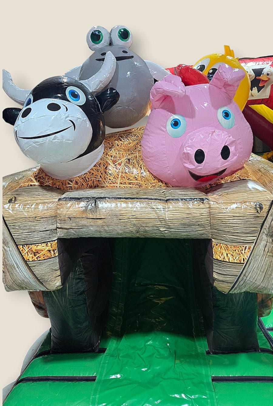 Make your next Party unforgettable with the 3D Farm bounce and slide. This farm-themed inflatable brings realistic straw, friendly animals—pig, sheep, duck, horse and cow—and a slide for hours of safe, active fun. Perfect for kids’ parties, family events, and community gatherings on the Isle of Wight.