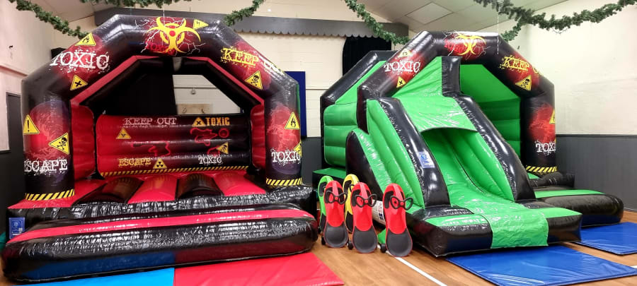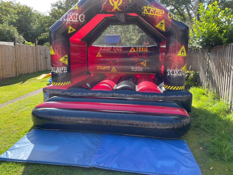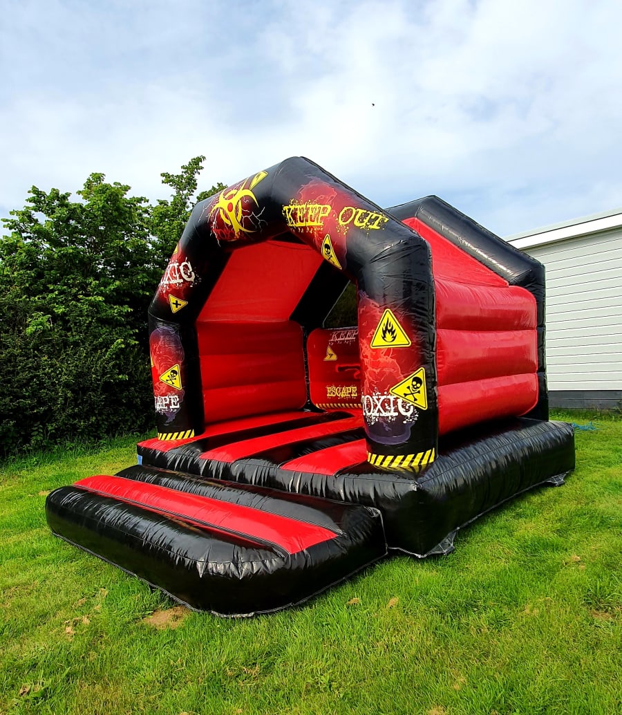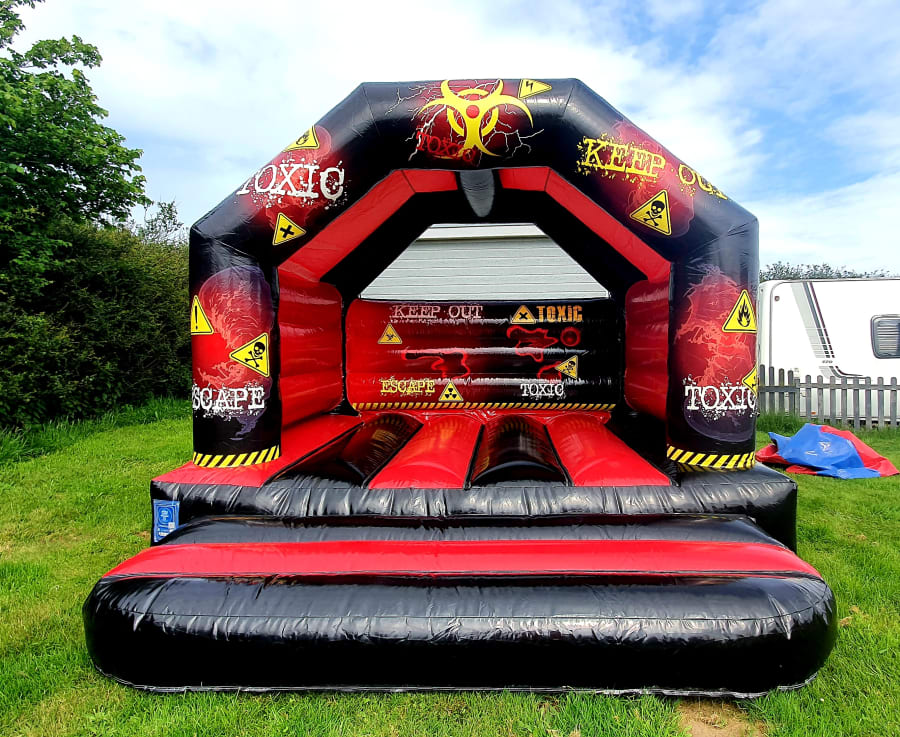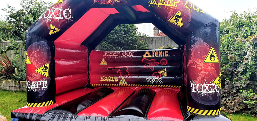 The perfect bouncy castle for any toxic themed party, with bright red walls and massive toxic signs, it's certainly an eye catching bouncy castle!