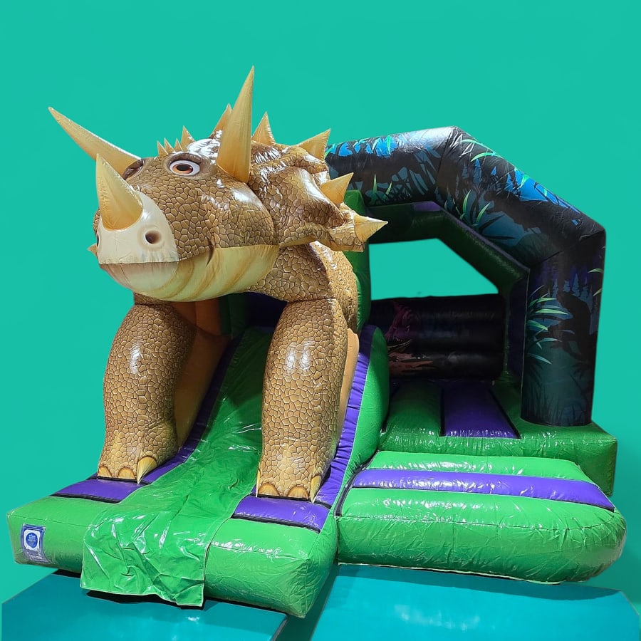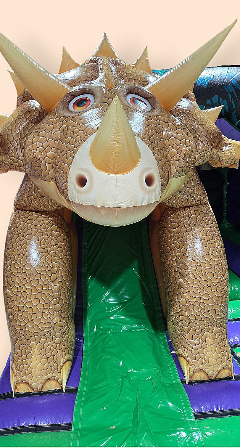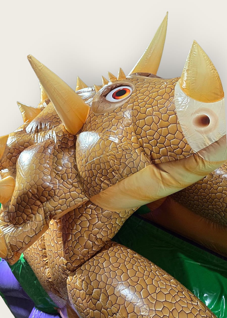 Bring Jurassic excitement to your event with the 3d Triceratops bounce and slide. Perfect for kids' parties, school fairs, and family gatherings, this Triceratops bouncy castle combines a spacious bounce area with an integrated slide for double the fun. Durable, colorful, and eye-catching, it creates a themed centerpiece that delights guests and boosts photo ops.