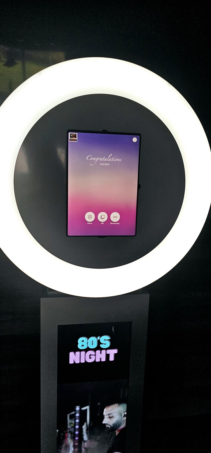 Not only does this interactive selfie pod have a boomerang option, you can also have different filters, stickers and can make the background personalised to you!