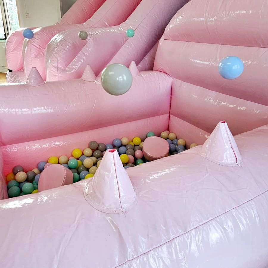 The perfect addition to any gathering with little guests, our pastel pink vip package is a must for subtle but highly enjoyable entertainment, providing hours of fun, complete with a 5ft slide, softplay shapes and an air juggler ball pool with 1500 balls!